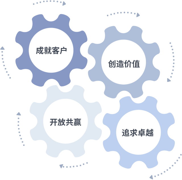 成就客户是一切决策的出发点,创造价值是衡量所有工作的标准,追求卓越是J9集团|国际站官网做事做人的态度,开放共赢是J9集团|国际站官网的格局也是最终的结果。价值观的齿轮环环相扣,推动着组织里的每个人不断向前。